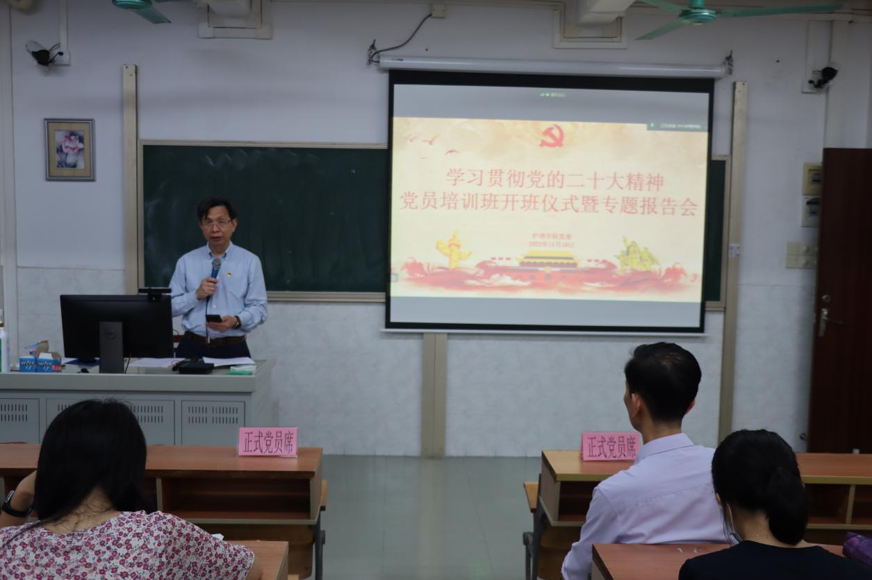 党委在学院620课室以线上线下相结合的方式,举行学习贯彻党的二十大精神党员培训班开班仪式暨专题报告会。学院党委书记陈昌龄同志主持开班仪式并做了首场专题辅导报告。