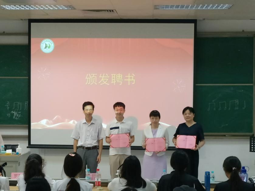 首先,学院党委书记陈昌龄为三位新任班主任颁发聘书并合影。