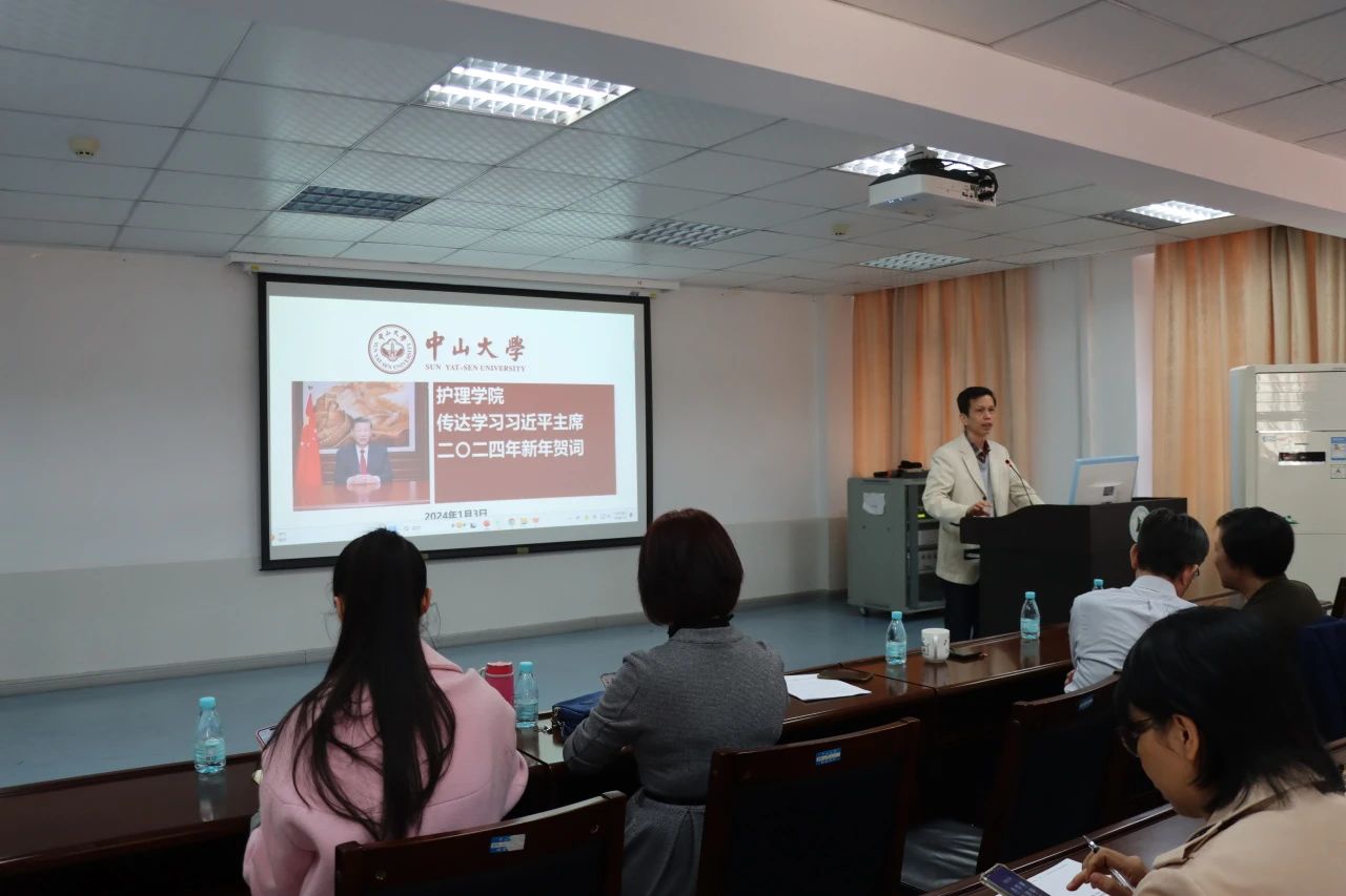 在正式会议开始之前,学院党委组织全体教职工进行集体学习。陈昌龄书记传达学习了《习近平主席二〇二四年新年贺词》及习近平总书记在纪念毛泽东同志诞辰130周年座谈会上的重要讲话精神。